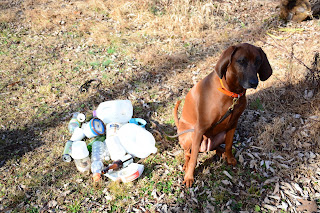 The plan this morning was to just take Penny out on a hike and then later in the afternoon go out and do a clean-up on my own. Of course things did not go as planned. We started our hike at the Preachers Camp access at Beltzville and headed down the lake on the Trinity Gorge Trail towards where I had done two clean-ups earlier this week. I did not even take any bags along, just my pack and not far into the hike I wished I had.