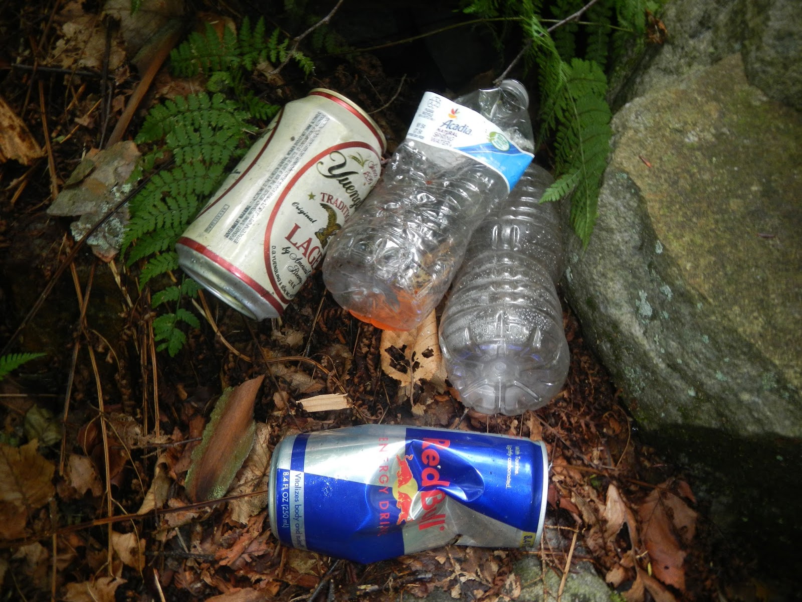 I went to remove the trash in the photo on the left and ended up finding everything on the right. All of this was thrown off the trail and into the Rhododendrons on the side. Not easy to spot until you are under the Rhododendrons.
