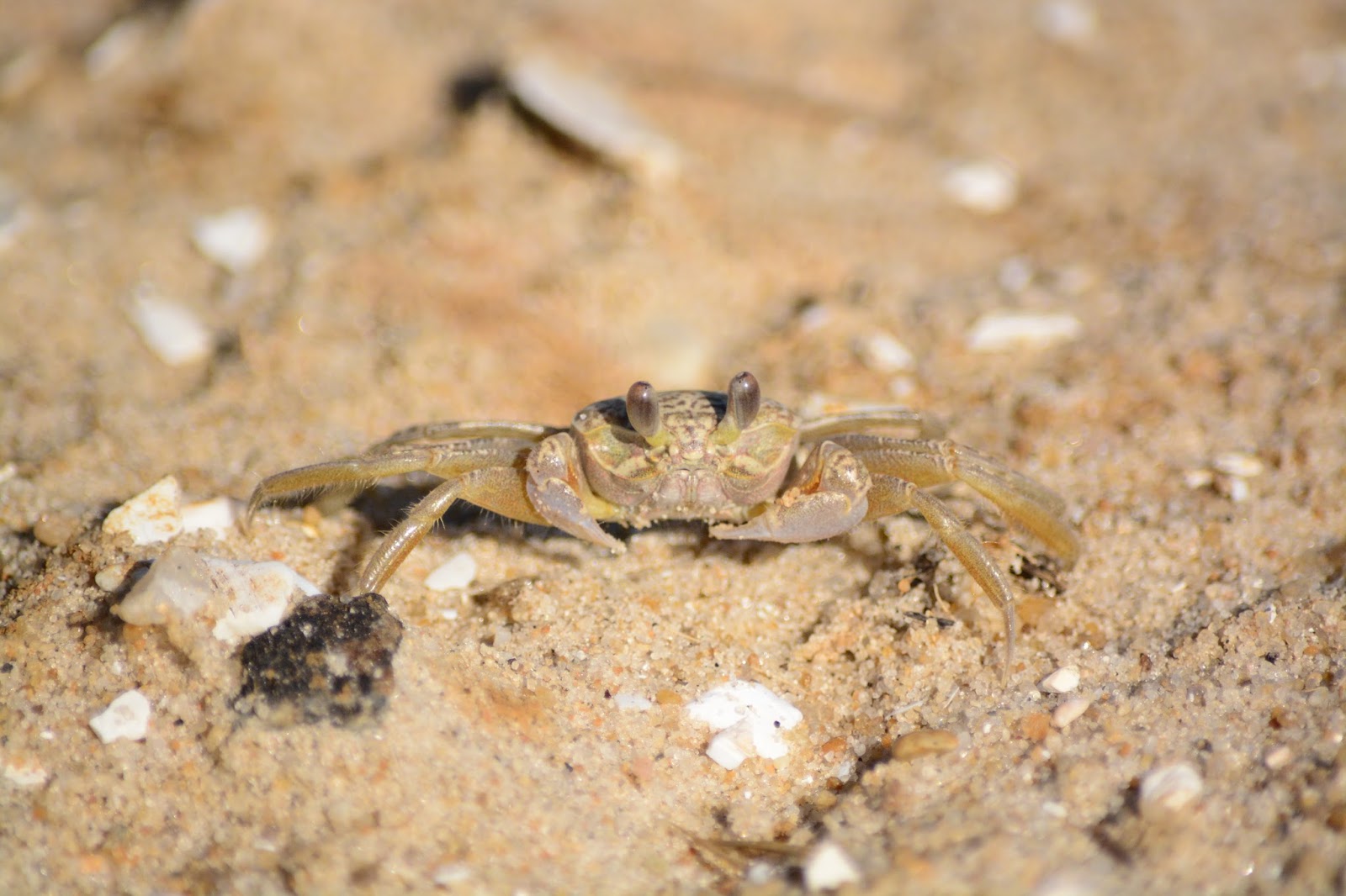 Very hard to spot, on and around the dunes there were many Ghost Crabs. For me they were impossible to see until they started moving. In the tidal areas I did also see Fidler Crabs, no good photos of those though.